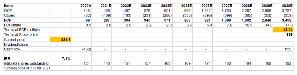 If you are reading my deep dive for the first time, I encourage you to read my piece on “approach to valuation”. I follow an “expectations investing” or reverse DCF approach as I try to figure out what I need to assume to generate a decent IRR from an investment (in this case ~7%). Then I glance through the model and ask myself how comfortable I am with these assumptions. As always, I encourage you to download the model and build your own narrative and forecast as you see fit to come to your own conclusion. None of us have the crystal ball to forecast 5-10 years down the line, but it’s always helpful to figure out what we need to assume to generate decent return.