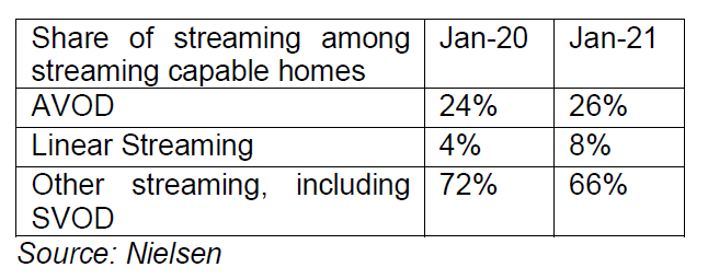 While Roku doesn’t quite disclose TRC’s streaming hours, it did mention that TRC is the fastest growing channel on Roku. I do wonder though whether this is just mere base effect. But the thesis on rising AVOD penetration does seem to be right. As per Nielsen’s data, both AVOD and linear streaming penetration in overall streaming is rising. In fact, non-SVOD penetration within streaming is rising faster in certain demography. For example, 45% of the total streaming hours in African American households came from non-SVOD channels. Streaming itself is accounted for 25-30% of all TV viewed in the US. Therefore, as cord cutting continues and streaming continues its secular journey, Roku will enjoy a tailwind. On top of it, AVOD’s rising penetration within OTT should provide them further momentum.