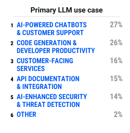 Kong surveyed 550 users, developers, engineers, and IT decision-makers to understand LLM usage/adoption. With the caveat of the sample size and other limitations for these surveys, here's a quick look at key highlights from the report:
