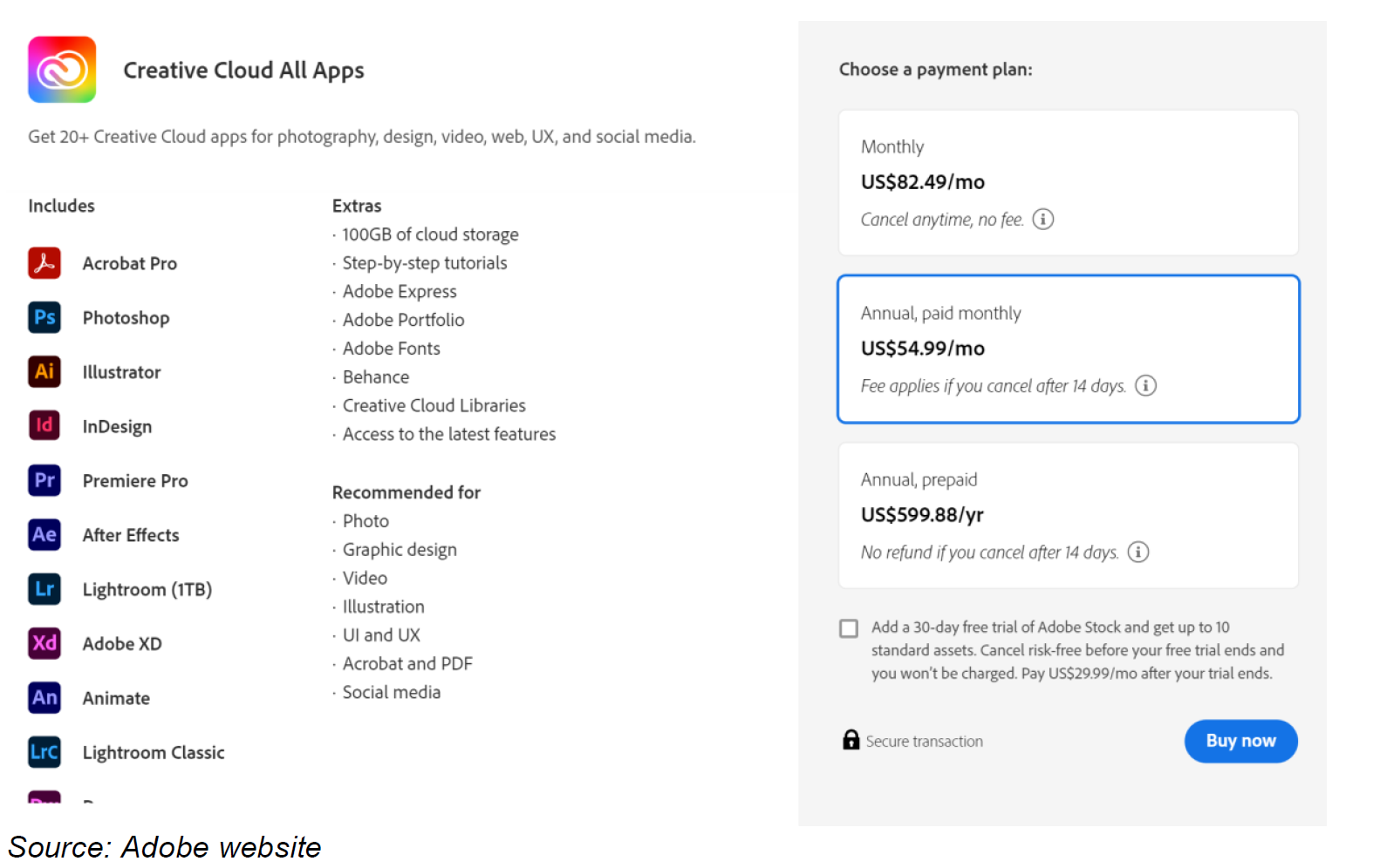 Considering the outsized importance of Creative Cloud for Adobe, I will primarily focus on Creative Cloud’s competitive dynamics, and briefly touch on Document Cloud and Experience Cloud’s competitive dynamics.