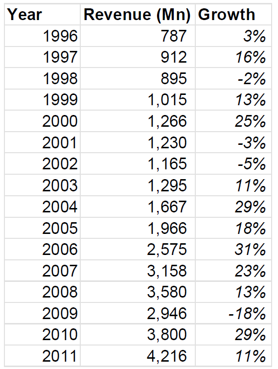 In 1989, although Adobe had 30 customers, Apple accounted for 29% of Adobe’s revenue and decided to work on a rival product of PostScript. Given the former partners were becoming potential rivals, Apple sold its Adobe stake. While Adobe’s sales decelerated dramatically in 1989, Adobe also laid out the groundwork to diversify its products. By the late 80s, Adobe launched two more products that went onto define their categories: Illustrator (vector-based editing software) and Photoshop (pixel-based editing software). While Illustrator was developed organically, Adobe licensed the Photoshop software in 1988 and eventually bought it outright for $34.5 mn in 1995. In 1991, Adobe launched Adobe Premiere (video editing software). The product velocity didn’t even stop there and in 1993, Adobe launched Portable Document Format (PDF).