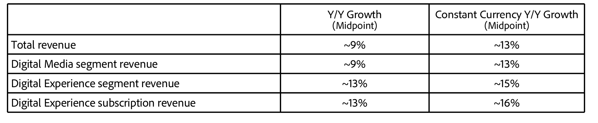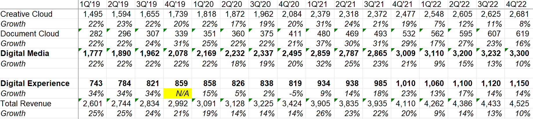 Digital Media, Digital Experience, and overall revenue in 4Q'22 increased +13%, +16%, and +14% YoY respectively (all FXN).