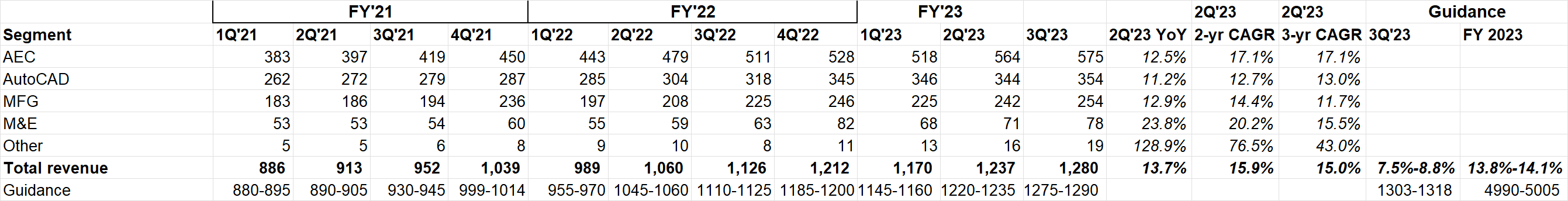 Autodesk's earlier earnings threads: FY 1Q'22, 2Q'22, 3Q'22, 4Q'22, 1Q'23, 2Q'23