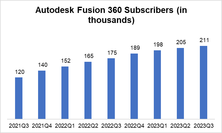 Speaking of Fusion 360, subscriber number continues to chug along but at a slower pace which is expected given the macro environment.