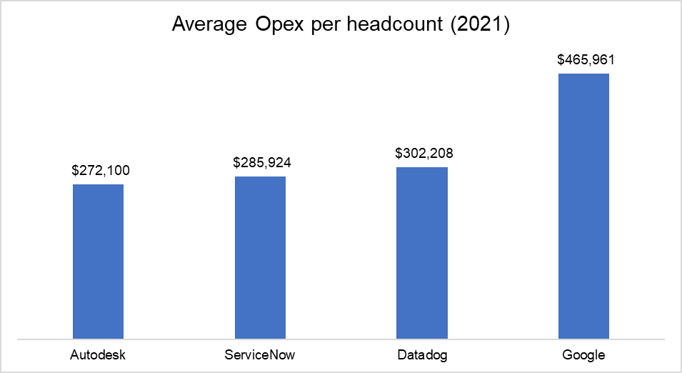 Autodesk also was relatively more prudent in hiring cadence. Number of employees increased by 13.9% and 9.6% in last two years respectively.