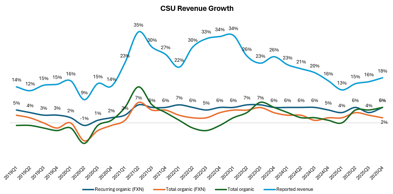 Is AI accelerating CSU’s organic revenue growth? Management confirmed during the call that AI has so far neither contributed nor contracted CSU’s organic revenue.