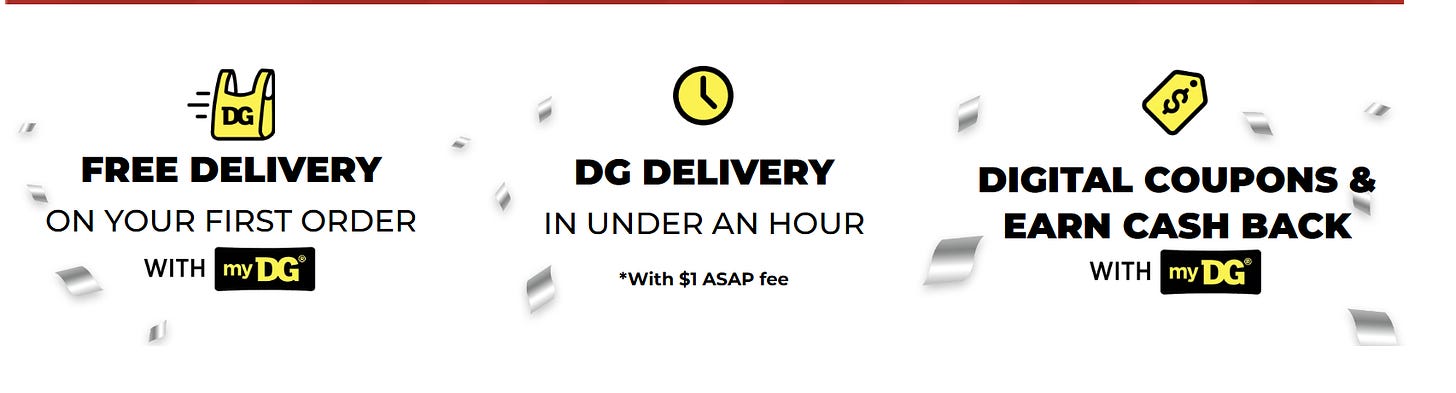 DoorDash or Uber doesn’t do delivery in my area for DG yet, so I cannot quite test it yet. Their website or app is also not quite rich with information about this service. I can, however, see that they charge $1 fee per order if you want delivery under an hour. This website mentioned $3.49 - $7.49 Service Fee (depends on the size of your order) that customers pay. Given typical DG basket size, $5-7 can actually be a material percentage of the overall basket size. With enough volume, I can see how it can be profit accretive for DG.