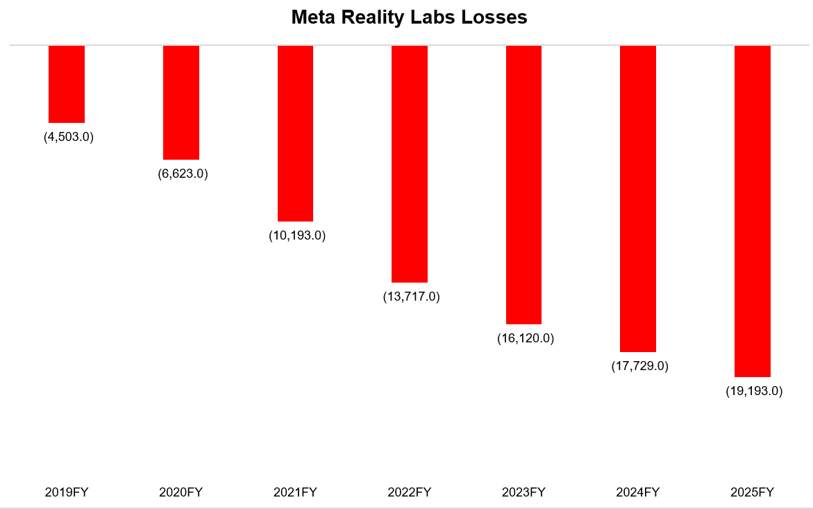 Is there any manager who would survive in any company if one of your segment operating performance looks like Meta’s Reality Labs? It is a tad bit astonishing that a founder who has built one of most generation defining businesses in the last couple of decades also managed to fund one of the ugliest cost structures of a business segment I have ever seen. I don’t think there is any manager out there who would fund a segment whose revenue in 2025 was essentially flat since 2021 despite losses becoming ~5x during this period. The only other business that I can think of with similarly lopsided, ugly cost structure is CoStar’s Homes.com. Of course, Homes.com is also a brain child of “founder mode”.