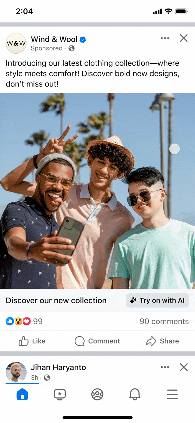 To give shoppers more ways to visualize a product and inspire confidence, we’ll begin testing the ability to see how clothing featured in an ad looks on them after they upload a photo of themselves.