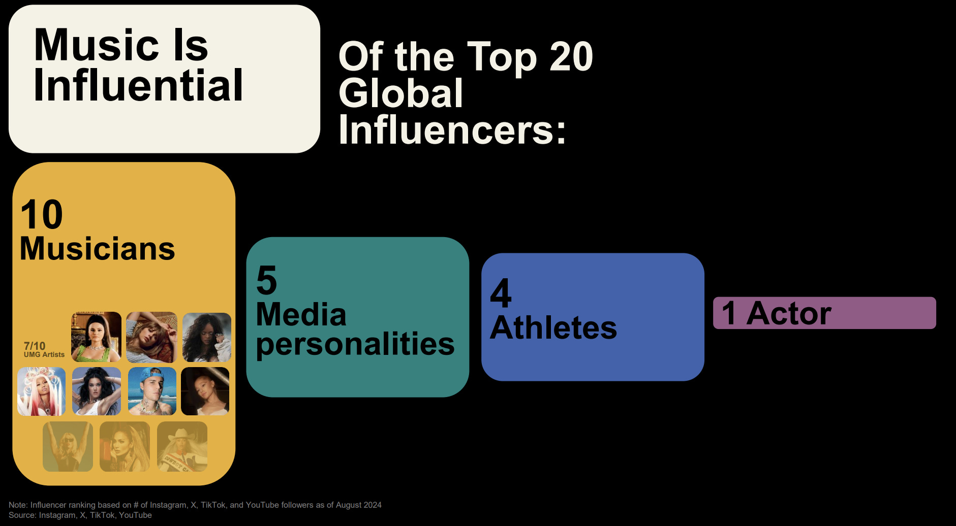 Given the rise of AI generated music, perhaps one of the key stakeholders that may be the biggest loser in the current music value chain is the musicians themselves. If someone with no talent in music can generate a rather catchy tune on their own using these tools, wouldn’t we fundamentally be less impressed with someone’s ability to do so without these AI tools? We may be deeply averse to AI generated music, but the fact that almost every musician will likely use AI in some shape or form within their music may make us less drawn to the artists themselves. That may seem like almost bit of dystopian, but frankly speaking, I was more uncomfortable when I came across this slide in UMG’s investor presentation last year. Is society fundamentally better off when the musicians are some of the most influential people around? If technology commoditizes their raw talent and they lose their gravitas, aura, and appeal to impressionable youth (and old), I cannot say I feel compelled to shed tear over it. Of course, you can have a different opinion and that’s fine.
