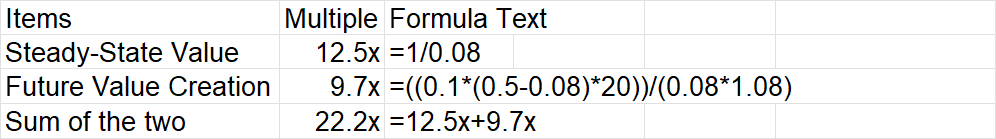 Valuing the "Future Value Creation" is more tricky, but let me give it a shot.
