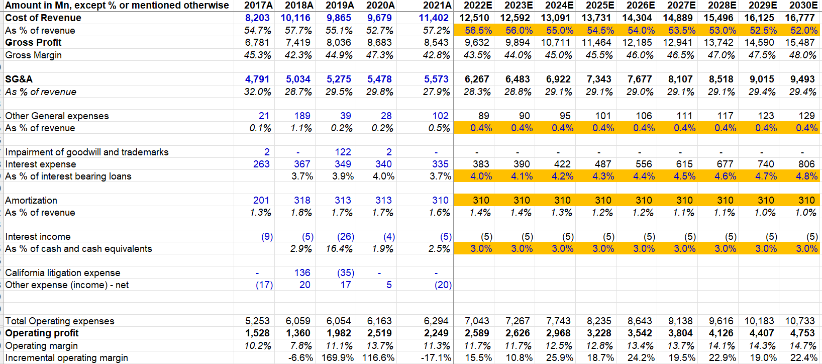 If you are reading my deep dive for the first time, I strongly encourage you to read my piece on “approach to valuation”. Please read it at least once so that you understand what I am trying to do here. I follow an “expectations investing” or reverse DCF approach as I try to figure out what I need to assume to generate a decent IRR from an investment which in this case is ~9.5%. Then I glance through the model and ask myself how comfortable I am with these assumptions. As always, I encourage you to download the model and build your own narrative and forecast as you see fit to come to your own conclusion. None of us have the crystal ball to forecast 5-10 years down the line, but it’s always helpful to figure out what we need to assume to generate a decent return.