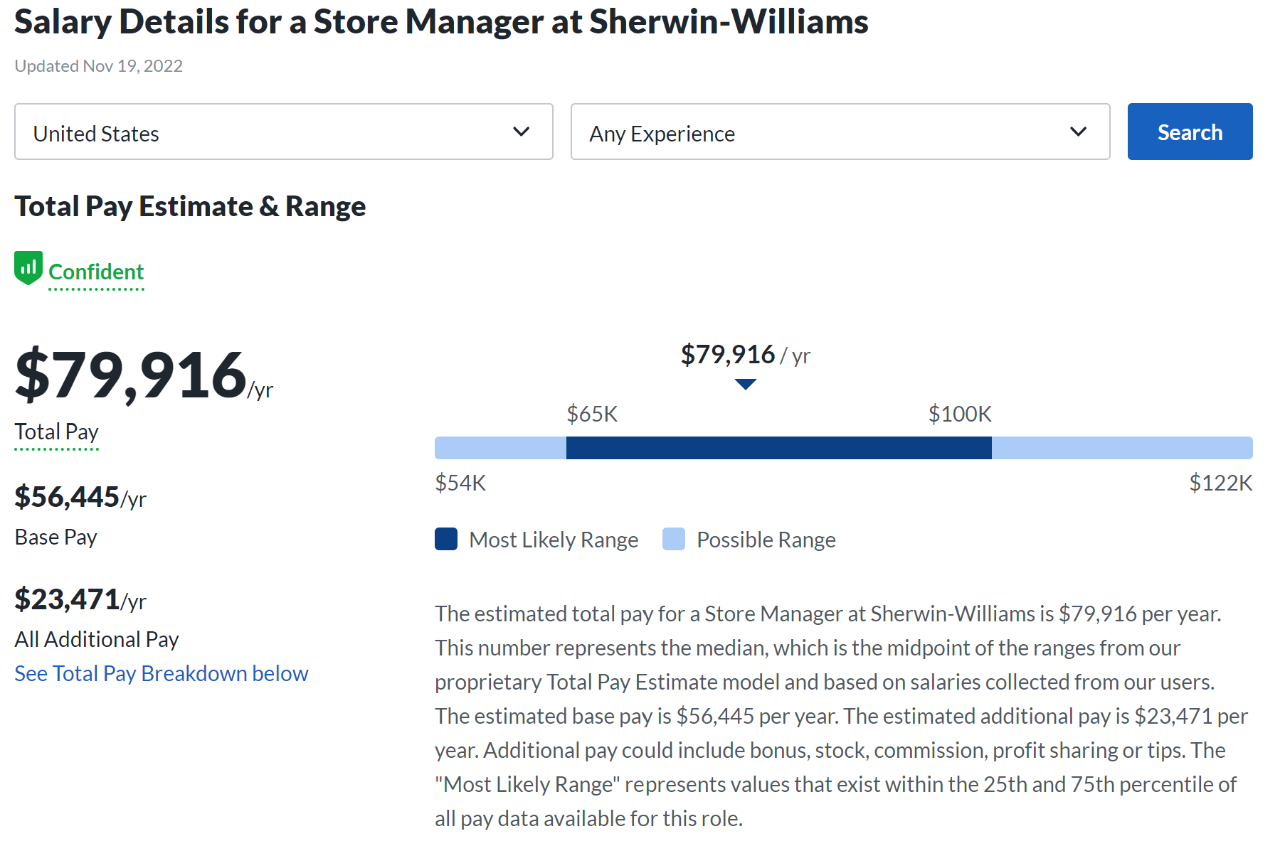 When I visited my local Sherwin Williams Store, I chatted with the Assistant Store Manager who used to be Store Manager at McDonalds but decided to join as Assistant Store Manager at Sherwin Williams. She mentioned they have two full-time employees to manage the store (one Store Manager, and one Assistant Store Manager). Glassdoor indicates an average Sherwin Williams Store Manager makes $80K per year. Assuming the average Assistant makes ~$60-70K/year, the fixed salaries expenses per store is $150K/year. Keep in mind an average store makes ~$1.2-1.4 Mn gross profit today with this fixed salary base which is perhaps lower than an entry level SWE's first-year comp. Beyond this fixed salary, there are variable wages. The assistant manager mentioned their store has four more employees who are paid on an hourly basis (more on this later).