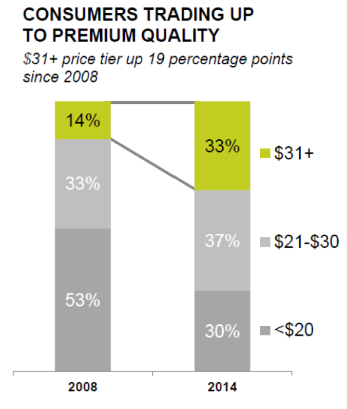 "A 2,000 sqft home might require 12 gallons of paint, which comes to around $400-$600 depending on quality (per homeadvisor.com). The incremental $100-$200 a homeowner ponies up for a higher quality, longer duration coat is marginal relative to the $3,000+ she pays a contractor to beautify and protect perhaps her most valuable asset. It makes little sense for a professional contractor (who ultimately decides which paint to buy for a job) to opt for an unknown brand of questionable quality since the productivity-driven labor cost savings from using higher performance paint exceeds the incremental costs of product upgrading, and in any case, a homeowner will happily pay up a bit for a paint job if doing so protects the home’s resale value...its trusted brand (plus the negligible cost of paint relative to the value of the coated house) has allowed the company to raise prices when its input costs increase (as they did from 2010-2012) and at least hold price when they decrease."