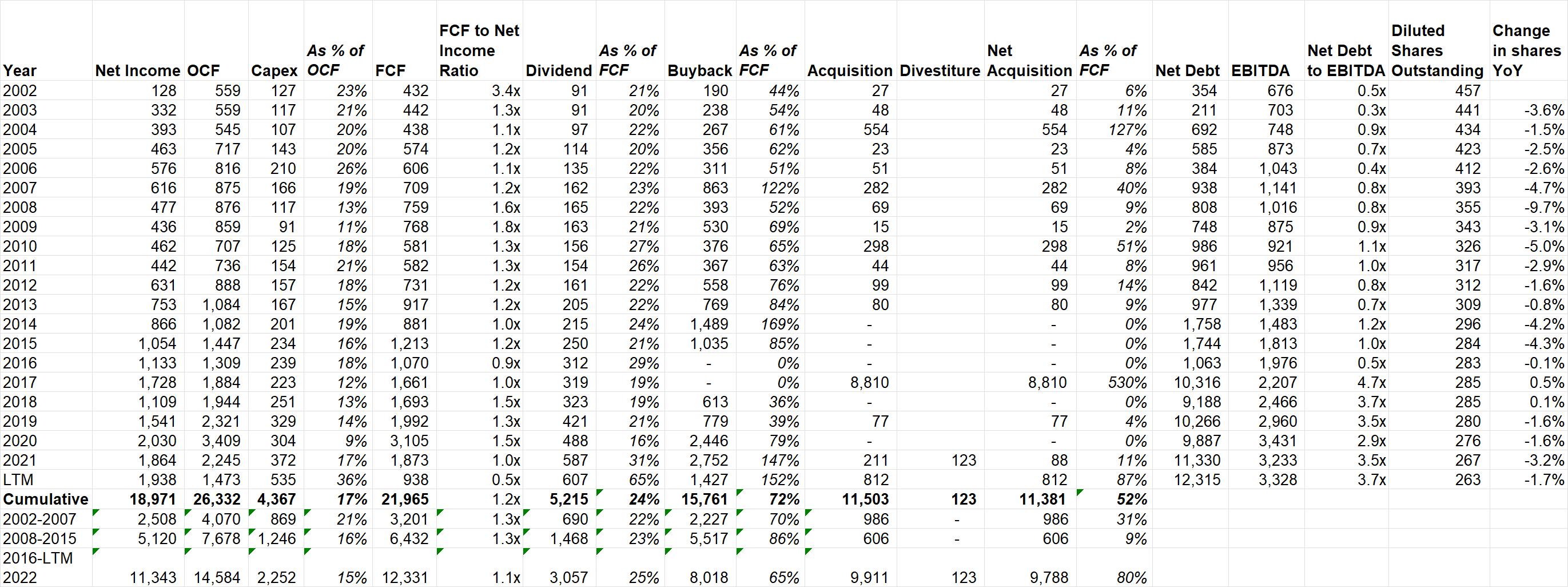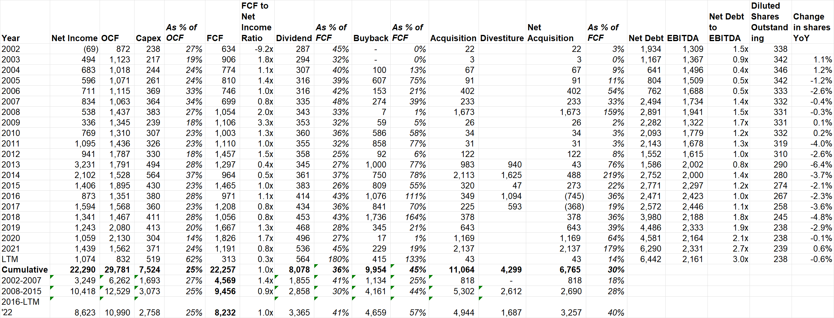 SHW Capital Allocation (2002-2022)