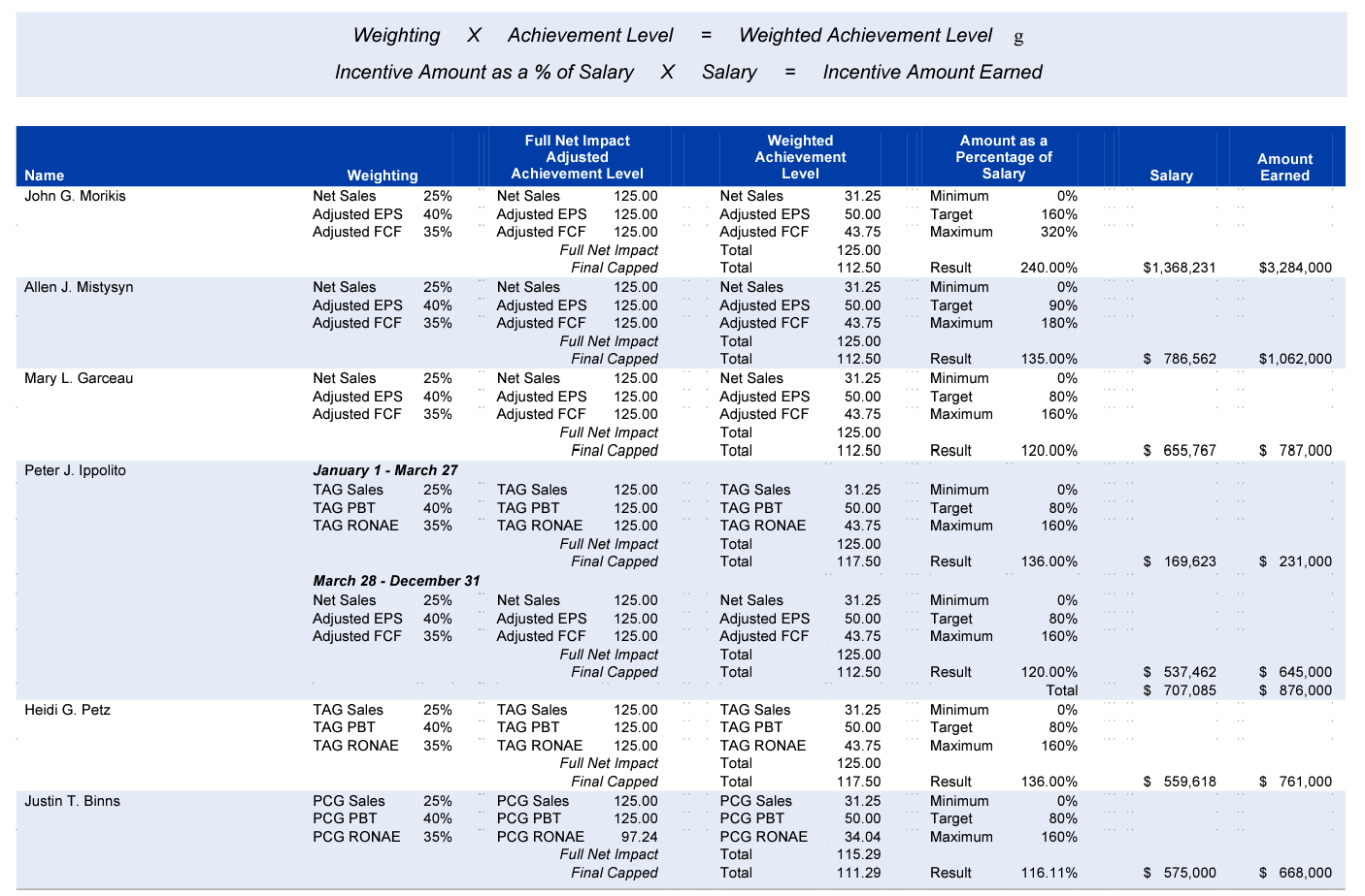 When I looked at incentives of the top management, I noticed both base salaries and annual bonus are paid in cash. Annual bonus depends on different metrics for different people in the Senior Management. For example, CEO's annual bonus is tied with Sales, EPS, and FCF.