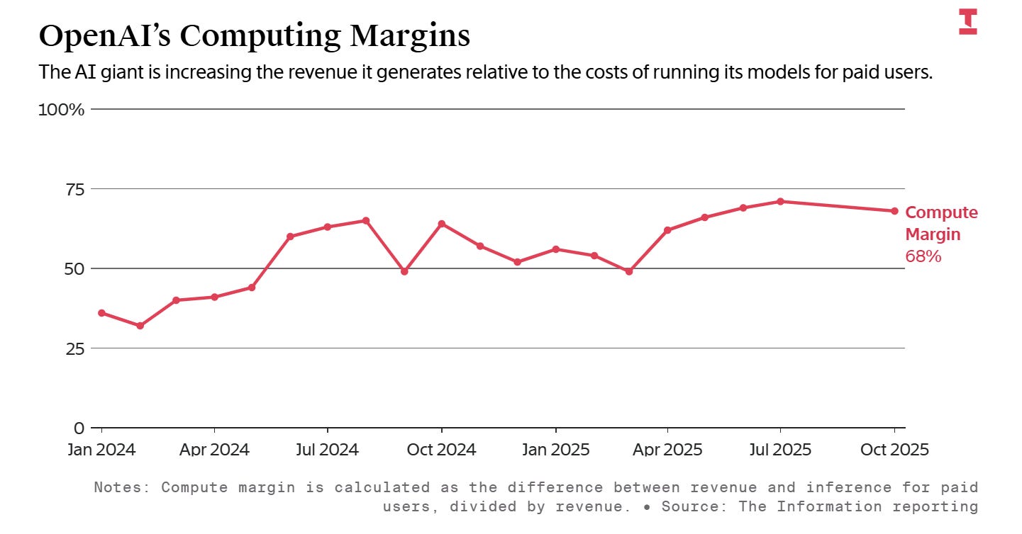 The question of economics is likely to become more front and center over time. The Information recently reported that OpenAI’s computing margin has substantially improved from ~35% in Jan’24 to ~68% in Oct’25. That sounds very impressive, but remember, this is only for paid users which is typically ~5% of OpenAI’s users. The cost associated with the rest ~95% who are using ChatGPT are not considered in this “margin” calculation. For ChatGPT, it is perhaps all but necessary to introduce ads at some point soon, but they know it’s almost certainly going to be bit of a headwind for incremental growth, especially when Gemini chat experience will likely remain ad free. And of course, the question that looms large is the training related costs. Even if you make respectable margins on inference, the question of when can you really get off or at least slow down the treadmill of training the next model is the most uncomfortable question in AI.