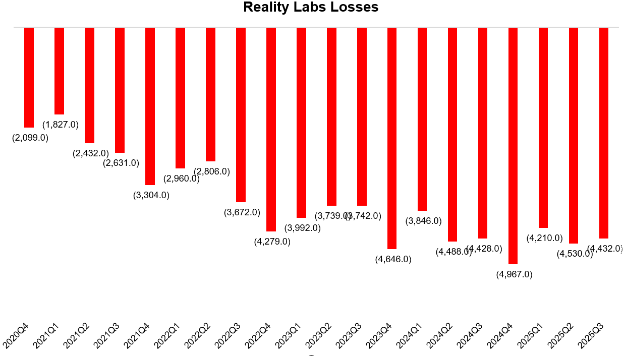 You have all seen the chart of Meta’s Reality Labs (RL) losses. Just as a reminder, ever since Meta started reporting RL as a separate segment, it has reported a cumulative loss of $73 Billion in the last 20 quarters. Obviously, they were incurring losses even before reporting the segment separately; so it is very conceivable that Meta’s accumulated losses tally may be $100 Billion by 2025.